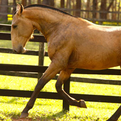Pur Sang Lusitanien Né le 7 Novembre 2001 Robe : Isabelle Taille : 1m60 Commentaires Lusitanian Dream Issu de deux chefs de ligne unanimement reconnus, Dardo II et Afiançado de Flandes, lui-même champion du Brésil et étalon recommandé par l'APSL, Vencedor vous séduira par son charisme et sa locomotion. Il transmet à ses produits rebond, élasticité, des membres solides et beaucoup de chic.Prrduit de la couleur. Disponible en IAC |